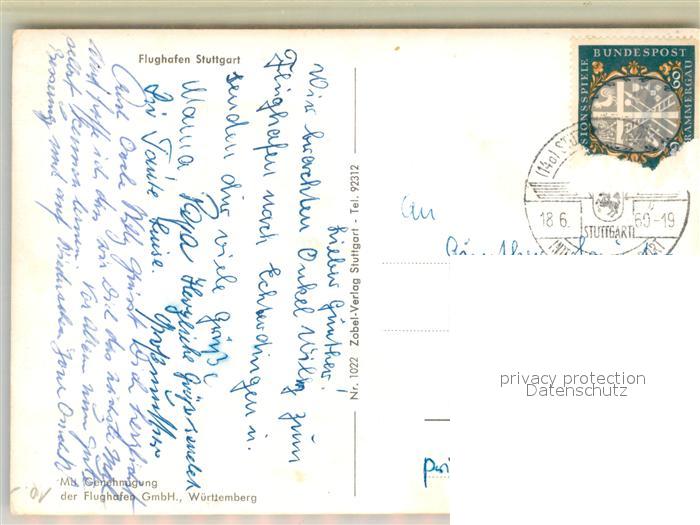 alte Postkarte Flughafen Airport Aeroporto Stuttart postalisch gelaufen Erhaltung siehe scans [PaolaD17]