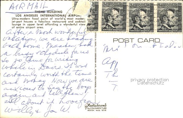 alte Postkarte Flughafen Airport Aeroporto Theme Building Los Angeles International Airport postalisch gelaufen Erhaltung siehe scans