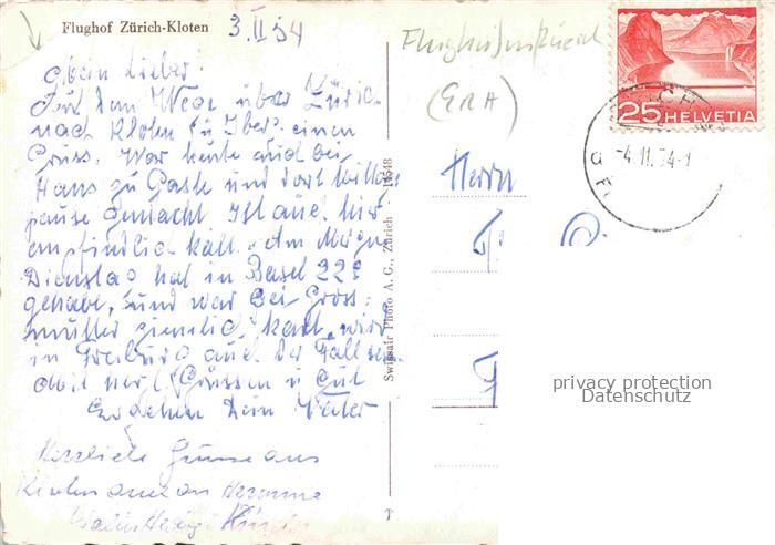 74041225 alte Postkarte Flughafen Airport Aeroporto Zuerich Kloten postalisch gelaufen Erhaltung siehe scans [SanaeD93] KatCode: 22120
