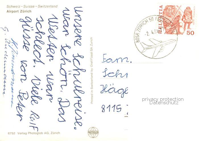 73908575 alte Postkarte Flughafen Airport Aeroporto Zuerich Kloten postalisch gelaufen Erhaltung siehe scans [IrynaD87] KatCode: 22120