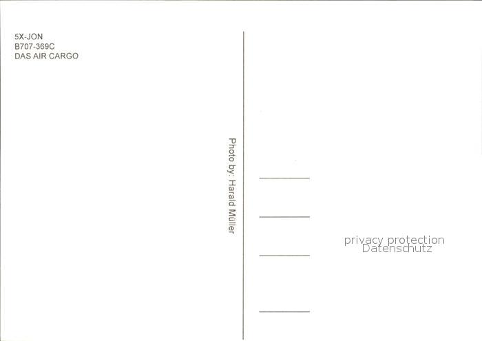 Flugzeuge Zivil 5X-JON B707-369C DAS Air Cargo postalisch nicht gelaufen Erhaltung siehe scans