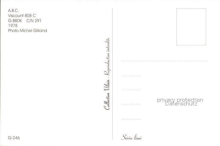 Flugzeuge Zivil A.B.C. Viscount 808 C G-BBDK C/N 291 postalisch nicht gelaufen Erhaltung siehe scans
