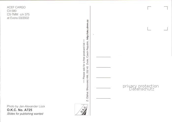 Flugzeuge Zivil ACEF Cargo CV-580 CS-TMM c/n 375 postalisch nicht gelaufen Erhaltung siehe scans