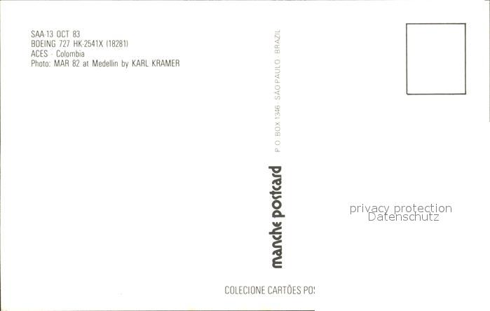 Flugzeuge Zivil Aces Colombia Boeing 727 HK-2541X postalisch nicht gelaufen Erhaltung siehe scans