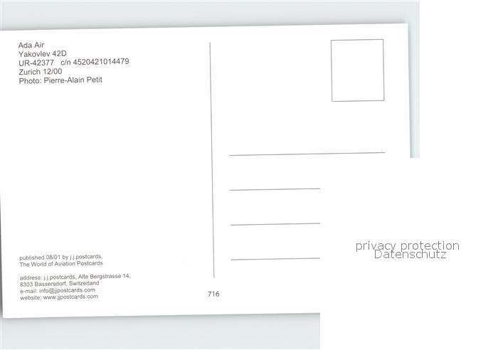 Flugzeuge Zivil Ada Air Yakovlev 42D UR-42377 postalisch nicht gelaufen Erhaltung siehe scans
