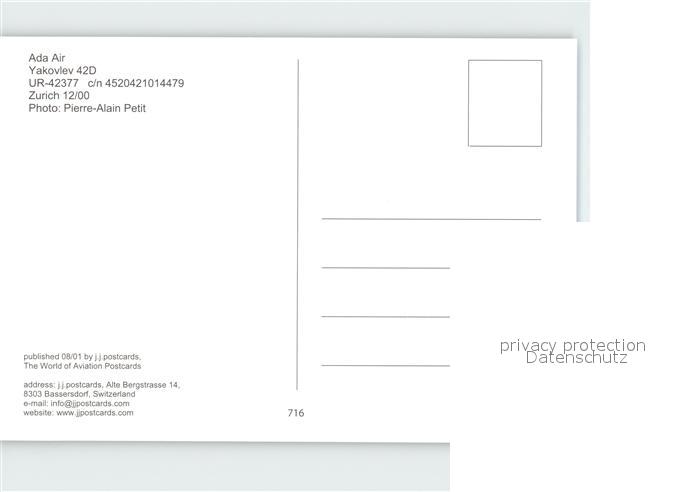 72230546 Flugzeuge Zivil Ada Air Yakovlev 42D UR-42377 KatCode 22120000001300