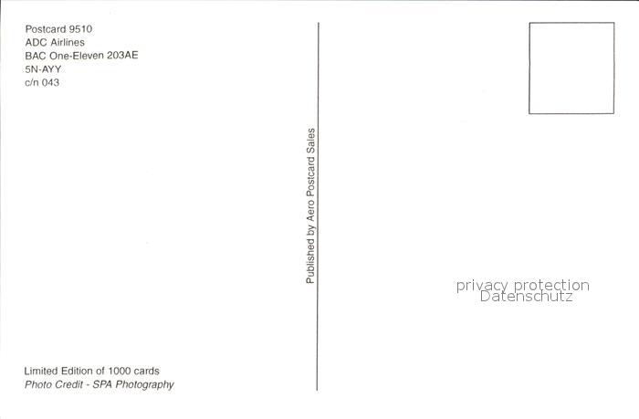 Flugzeuge zivil ADC Airlines BAC One-Eleven 203AE 5N-AVY postalisch nicht gelaufen Erhaltung siehe scans