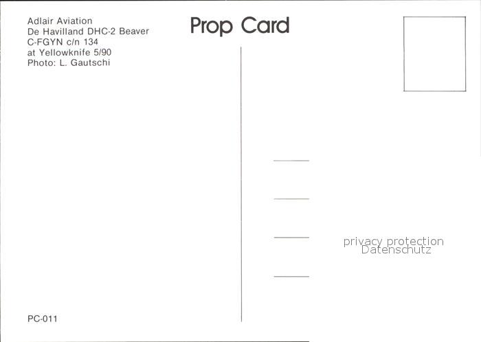 Flugzeuge Zivil Adlair Aviation De Havilland DHC-2 Beaver C-FGYN c/n 134 postalisch nicht gelaufen Erhaltung siehe scans