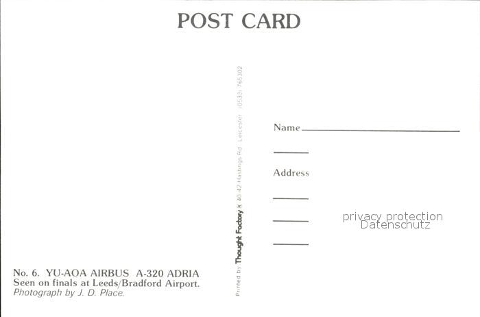 Flugzeuge Zivil Adria Airbus A-320 YU-AOA postalisch nicht gelaufen Erhaltung siehe scans