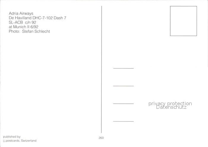 Flugzeuge Zivil Adria Airways De Havilland DHC-7-102 Dash 7 SL-ACB c/n 92 postalisch nicht gelaufen Erhaltung siehe scans