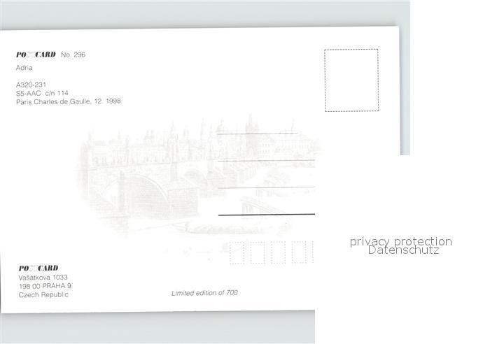 Flugzeuge Zivil Adria Slovenija A320-231 S5-AAC c/n 114 postalisch nicht gelaufen Erhaltung siehe scans