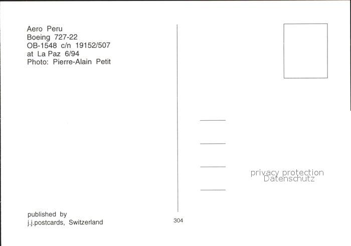 Flugzeuge Zivil Aeoro Peru Boeing 727-22 OB-1548 c/n 19152/507 postalisch nicht gelaufen Erhaltung siehe scans