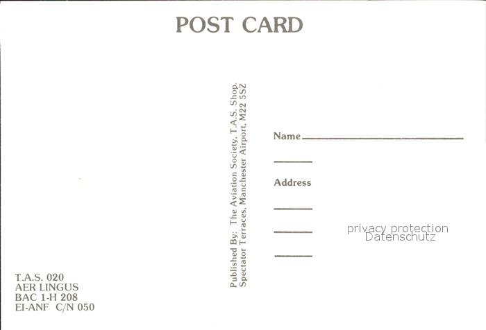 Flugzeuge Zivil Aer Lingus BAC 1-H 208 EI-ANF C/N 050 postalisch nicht gelaufen Erhaltung siehe scans