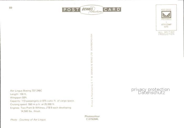 Flugzeuge Zivil Aer Lingus Boeing 737-248C El-ASL postalisch nicht gelaufen Erhaltung siehe scans