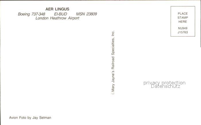 Flugzeuge Zivil Aer Lingus Boeing 737-348 EI-BUD MSN 23809 postalisch nicht gelaufen Erhaltung siehe scans