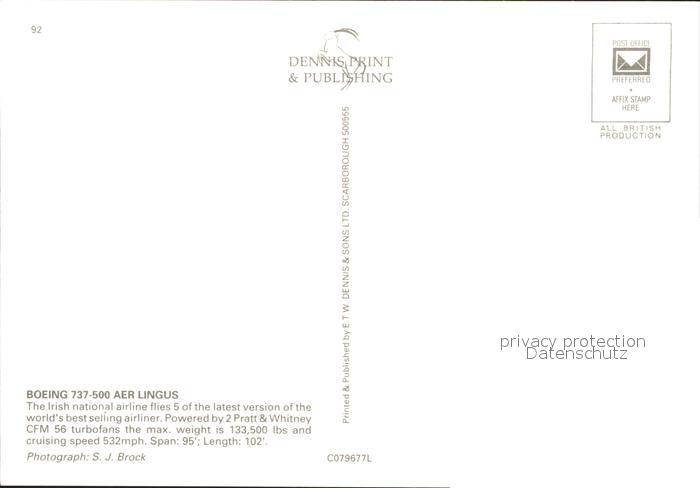 Flugzeuge Zivil Aer Lingus Boeing 737-500 postalisch nicht gelaufen Erhaltung siehe scans