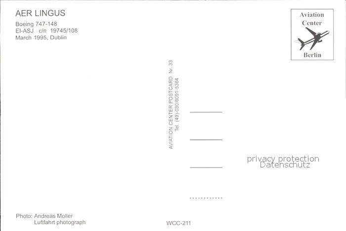 Flugzeuge Zivil Aer Lingus Boeing 747-148 EI-ASJ c/n 19745/108 postalisch nicht gelaufen Erhaltung siehe scans