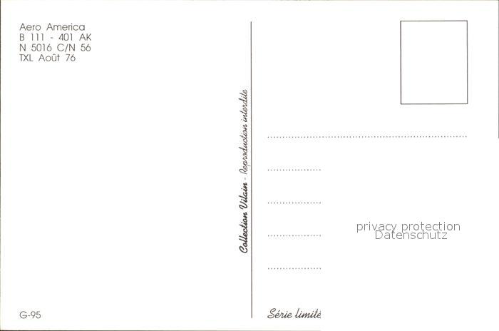 Flugzeuge zivil Aero America B 111-401 AK N 5016 C/N 56 postalisch nicht gelaufen Erhaltung siehe scans
