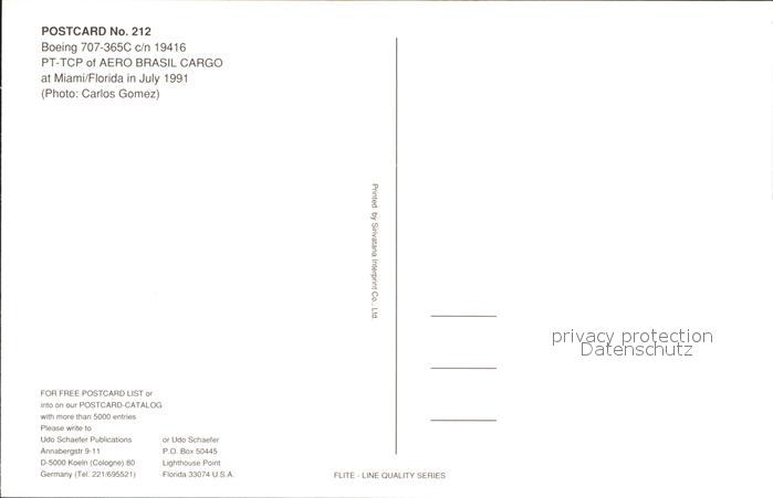 Flugzeuge Zivil Aero Brasil Cargo Boeing 707-365C c/n 19416 PT-TCP postalisch nicht gelaufen Erhaltung siehe scans