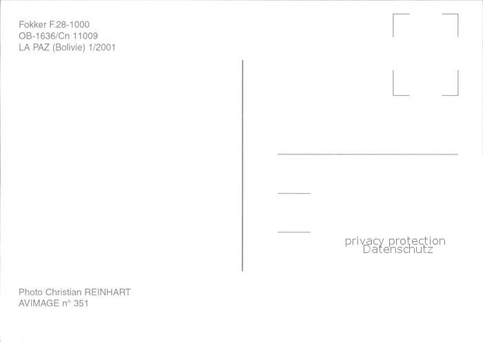 Flugzeuge Zivil Aero Continente Fokker F-28-1000 OB-1636 Cn 11009 postalisch nicht gelaufen Erhaltung siehe scans