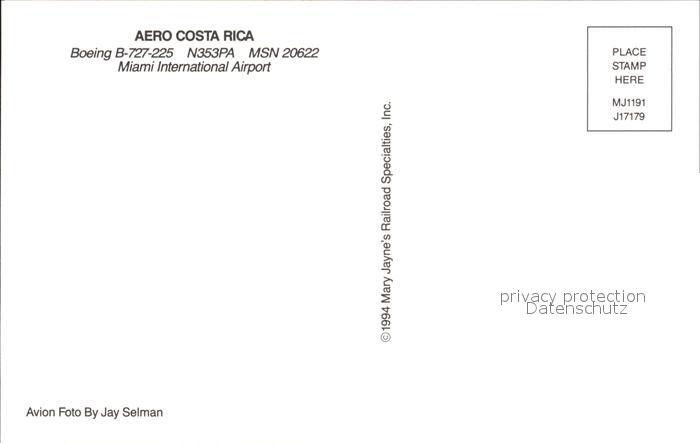 Flugzeuge Zivil Aero Costa Rica Boeing B-727-225 N353PA MSN 20622 postalisch nicht gelaufen Erhaltung siehe scans