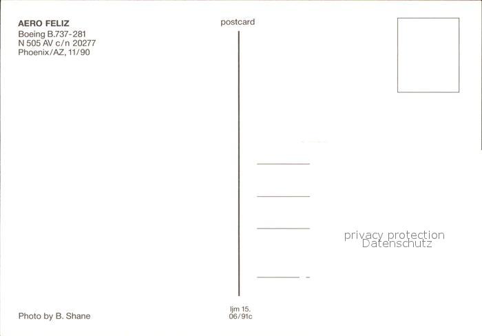 Flugzeuge Zivil Aero Feliz Boeing B737-281 N505 AV c/n 20277 postalisch nicht gelaufen Erhaltung siehe scans