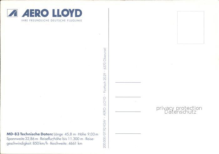 Flugzeuge Zivil Aero Lloyd Mc Donnell Douglas MD-83 postalisch nicht gelaufen Erhaltung siehe scans