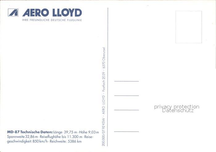 Flugzeuge Zivil Aero Lloyd Mc Donnell Douglas MD-87 postalisch nicht gelaufen Erhaltung siehe scans