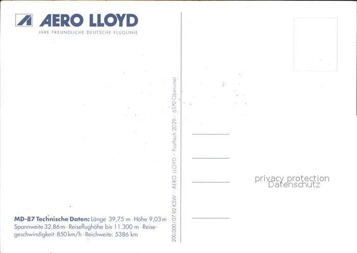 72614000 Flugzeuge Zivil Aero Lloyd Mc Donnell Douglas MD-87 KatCode 22120000001300