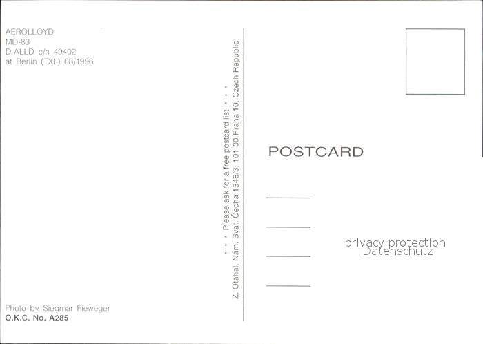 Flugzeuge Zivil Aero Lloyd MD-83 D-ALLD c/n 49402 postalisch nicht gelaufen Erhaltung siehe scans