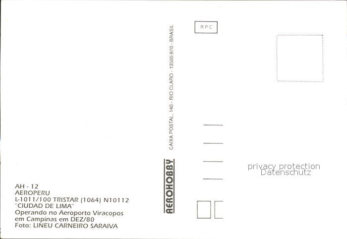 Flugzeuge Zivil Aero Peru L-1011/100 Tristar 1064 N10112 postalisch nicht gelaufen Erhaltung siehe scans