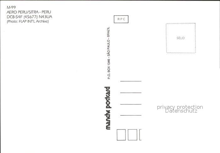 Flugzeuge Zivil Aero Peru Sitra Peru DC8-54F 45677 N43UA postalisch nicht gelaufen Erhaltung siehe scans
