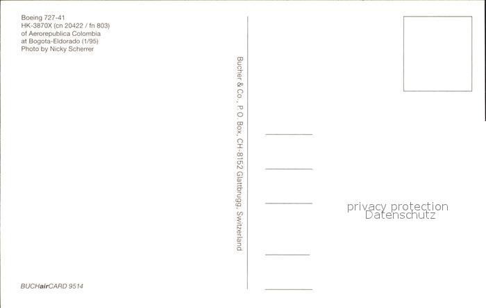 Flugzeuge Zivil Aero Republica Colombia Boeing 727-41 HK-3870X cn 20422 fn 803 postalisch nicht gelaufen Erhaltung siehe scans