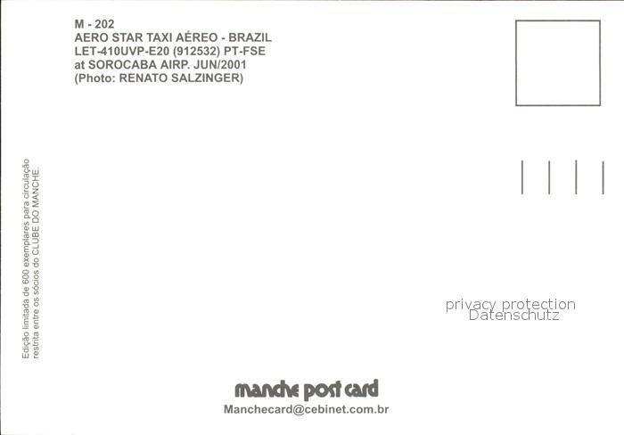 Flugzeuge Zivil Aero Star Taxi LET-410UVP-E20 PT-FSE postalisch nicht gelaufen Erhaltung siehe scans