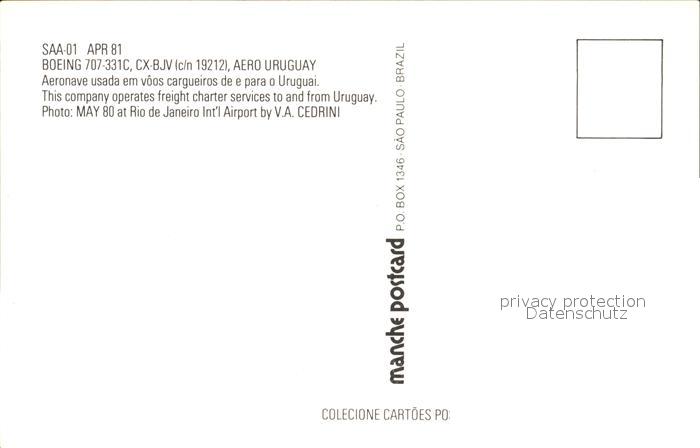 Flugzeuge Zivil Aero Uruguay Boeing 707-331C CX-BJV c/n 19212 postalisch nicht gelaufen Erhaltung siehe scans