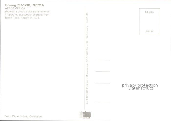 Flugzeuge Zivil AeroAmerica Boeing 707-123B N7521A postalisch nicht gelaufen Erhaltung siehe scans