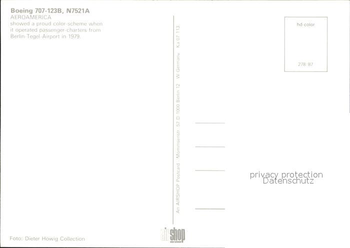Flugzeuge Zivil Aeroamerica Boeing 707-123B N7521A postalisch nicht gelaufen Erhaltung siehe scans