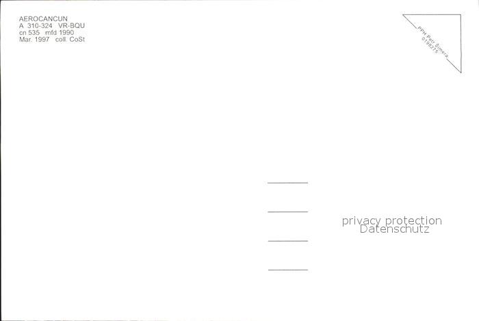 Flugzeuge Zivil Aerocancun A 310-324 VR-BQU cn 535 postalisch nicht gelaufen Erhaltung siehe scans