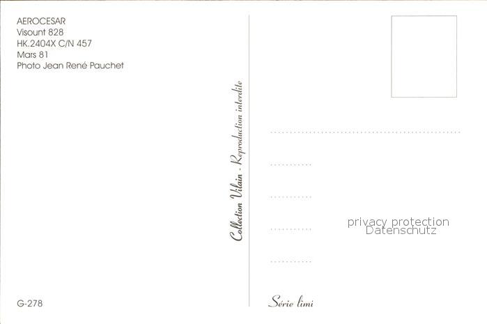 flugzeuge zivil Aerocesar Visount 828 HK.2404X C/N 457 Mars 81 postalisch nicht gelaufen Erhaltung siehe scans