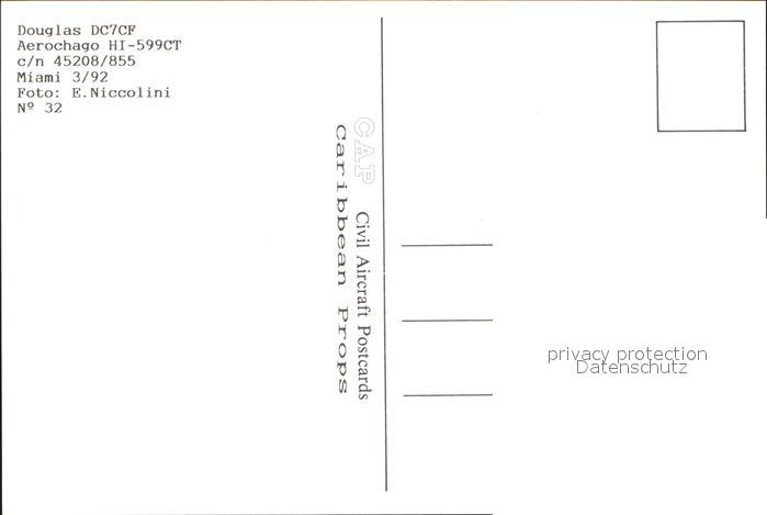 Flugzeuge Zivil Aerochago Douglas DC7CF HI-599CT c/n 45208/855 postalisch nicht gelaufen Erhaltung siehe scans
