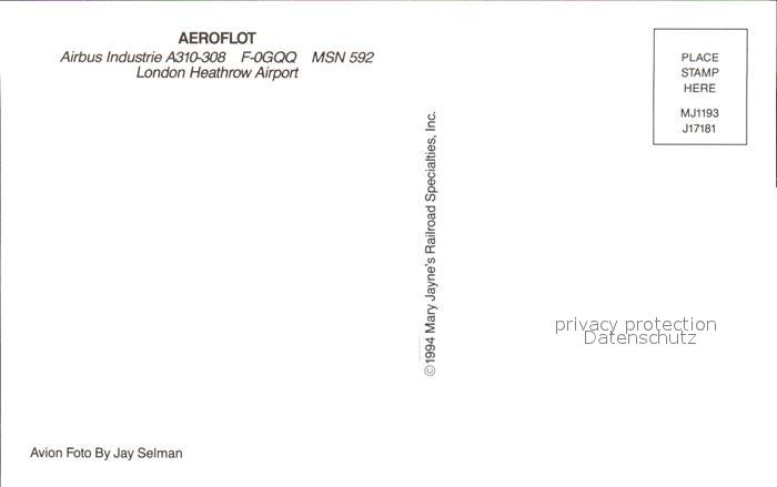 Flugzeuge Zivil Aeroflot Airbus Industrie A310-308 F-0GQQ MSN 592 postalisch nicht gelaufen Erhaltung siehe scans