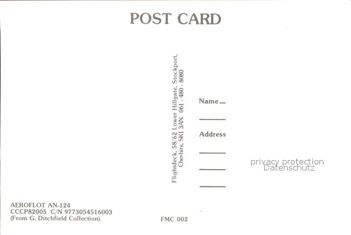 Flugzeuge Zivil Aeroflot AN-124 CCCP-82005 C/N 9773054516003 postalisch nicht gelaufen Erhaltung siehe scans