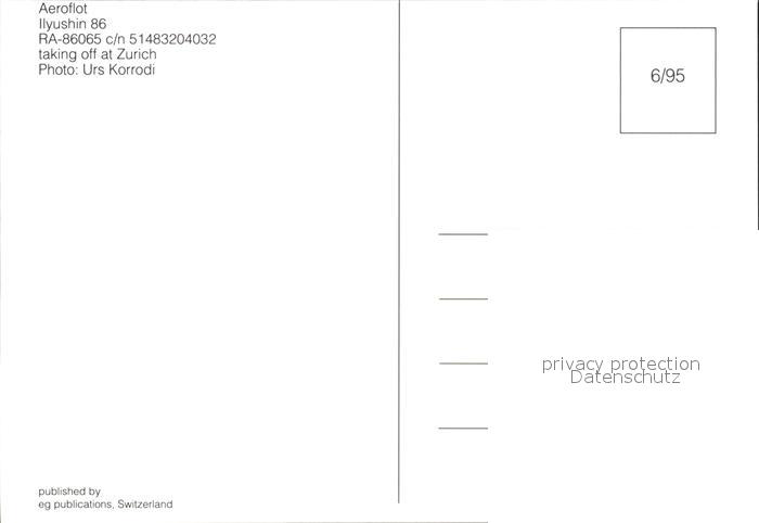 Flugzeuge Zivil Aeroflot Ilyushin 86 RA-86065 c/n 51483204032 postalisch nicht gelaufen Erhaltung siehe scans