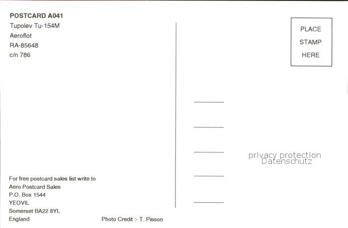 Flugzeuge Zivil Aeroflot Tupolev Tu-154M RA-85648 c/n 786 postalisch nicht gelaufen Erhaltung siehe scans