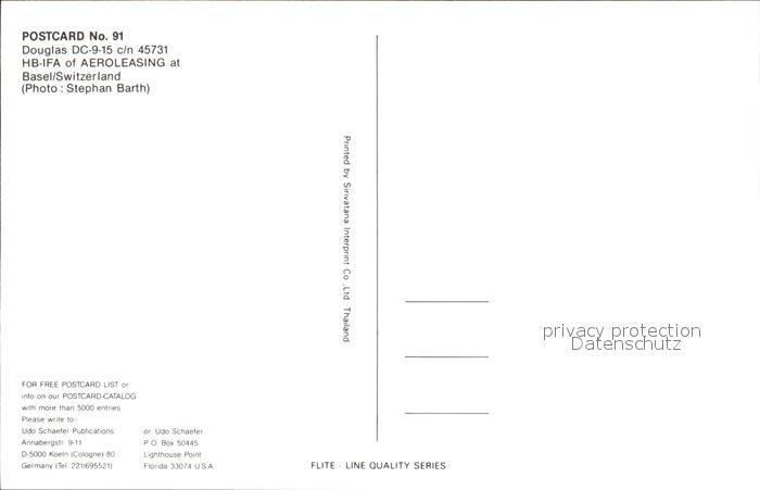 Flugzeuge Zivil Aeroleasing Douglas DC-9-15 c/n 45731 HB-IFA postalisch nicht gelaufen Erhaltung siehe scans