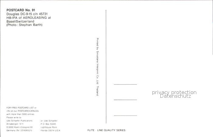 Flugzeuge Zivil Aeroleasing Douglas DC-9-15 c/n 45731 HB-IFA postalisch nicht gelaufen Erhaltung siehe scans