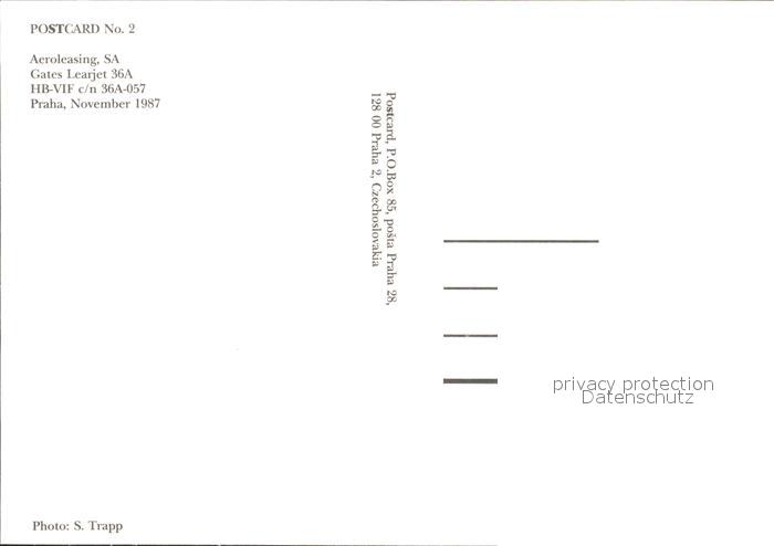 Flugzeuge Zivil Aeroleasing SA Gates Learjet 36A HB- VIF c/n 36A-057 postalisch nicht gelaufen Erhaltung siehe scans