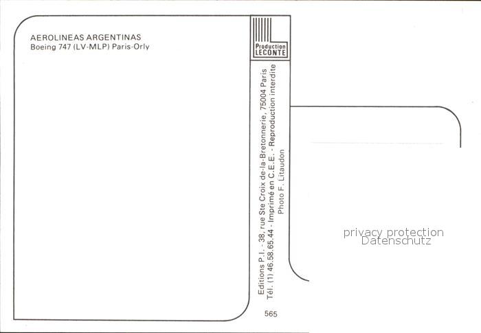 Flugzeuge Zivil Aerolineas Argentinas Boeing 747 LV-MLP postalisch nicht gelaufen Erhaltung siehe scans