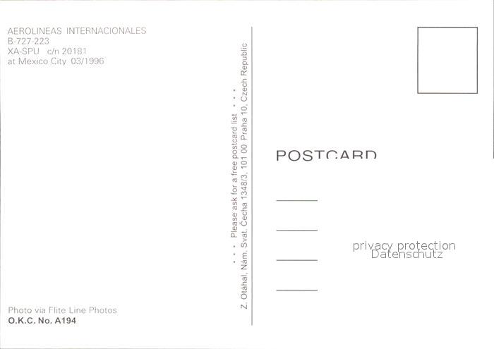 Flugzeuge Zivil Aerolineas Internacionales B-727-223 XA-SPU c/n 20181 postalisch nicht gelaufen Erhaltung siehe scans