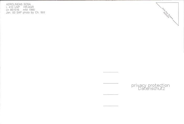Flugzeuge Zivil Aerolineas Sosa L 410 UVP HR-AQR cn 851516 postalisch nicht gelaufen Erhaltung siehe scans